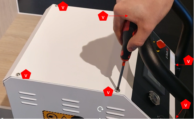 Unscrew the 6 screws holding the top cover in place