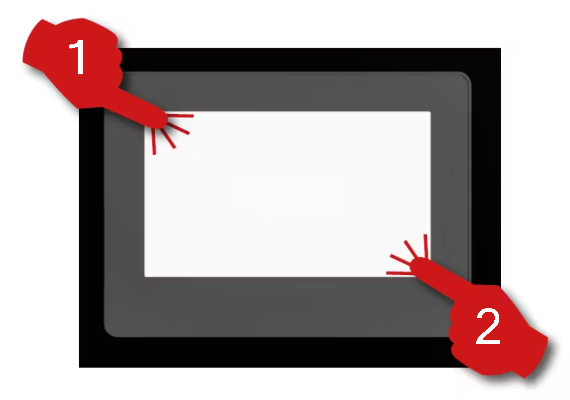 Enter the system menu by touching the top-left corner then the bottom-right corner of the display within 0.5 seconds.