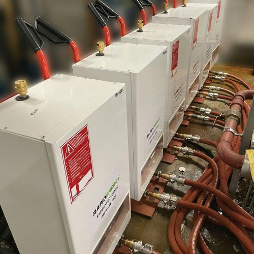 Temporary plant rooms and boiler hire has been growing in recent years. They’re often used to help sites that need emergency heating or to maintain services during a plant room refurbishment. Rapid Energy, a relatively new company in this area, has seen their business grow rapidly in line with this demand, and have also discovered a niche sector with portable electric boilers. Fulfilling a need in the construction sector Sami Kasap, chief marketing officer and co-founder of Rapid Energy, comments “Our business launch was delayed due to Covid-19 last year. But we have been operating for over nine months now and have seen our business go from strength to strength.” Rapid Energy approached ACV to purchase their E-Tech electric boiler range for trolley mounted boiler hire, fulfilling a demand predominantly in the construction sector. Sami went on to say, “ACV was already front of mind prior to the supplier selection phase. We were impressed with the service we received and how efficient they were at responding to our questions during the selection process. We conducted market research with professionals that use electric boilers. ACV were regularly cited during those conversations, so it was clear they had a trustworthy name and an excellent reputation. We originally only intended to buy around 10 units to create the trolley mounted systems, however demand for these products has been so popular we now have 33 in the fleet and growing. Their main use on construction sites is to help reduce the drying time of screed. However, with the E-tech W 15kW boiler being available as a single phase makes it ideal for housing developments, so they’re also used for temporary heating and hot water for the construction staff working on these projects. More recently we have seen customers use portable electric boilers to provide hot water for pressure testing the pipework in a building before hand over. Contractors usually conduct a cold water pressure test to check for leaks within the pipework systems. However, the problem with this approach is that the pipework is not subjected to expansion and contraction as it would if hot water was circulating around the system under ‘real world’ conditions. Therefore a leak could go undetected. By using hot water during this testing stage the pipework installation can be fully verified and signed off, and the risk of future leaks is mitigated after the building is handed over.” ACV’s product quality and support ticked all the boxes Rapid Energy chose ACV electric boilers due to their reputation, their ability to meet the required specifications, and of course the quality of ACV's products. Sami concluded, “We’ve been very impressed with the team at ACV UK and the robustness of the boilers when used on construction sites. We have also been able to link them together to run as a modular system for sites that need higher outputs.” Rapid Energy currently have 33 portable electric boilers available for their customers to hire and they are exclusively made with ACV electric boilers. ACV offer more than 13 electric boiler models from 14-259kW output, single and three phase options as well as combined heating and hot water models. For more information click here.